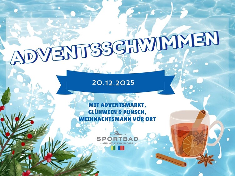 Am 20.12. findet in unserem Sportbad "Heinz Deininger" ein Adventsschwimmen mit einem gemütlichen Adventsmarkt statt. Auch der Weihnachtsmann kommt vorbei - nicht verpassen!