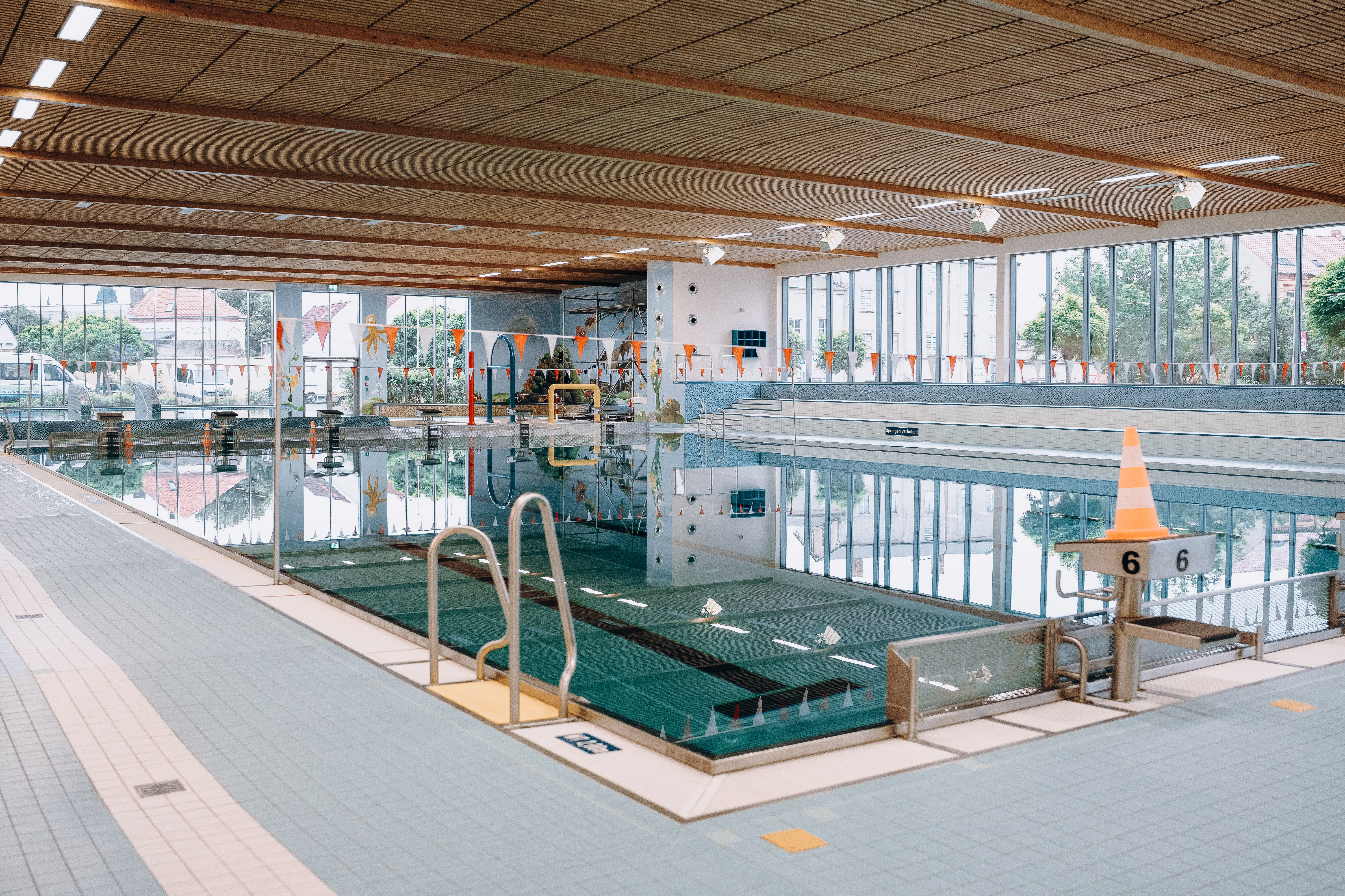 Unser Wettkampfbecken verfügt über sechs Bahnen mit einer Länge von 25 m. Die Tiefe des Beckens beträgt 2 m.